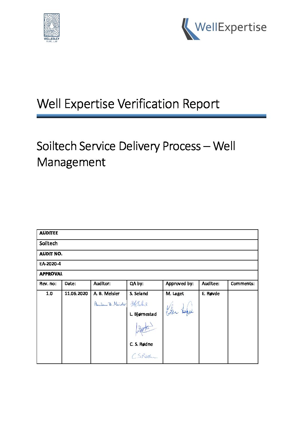 verification was conducted 28th May 2020 at Soiltech premises with some attending via Teams. At the end of the meeting, an action list was presented to Soiltech with the findings from the verification. This