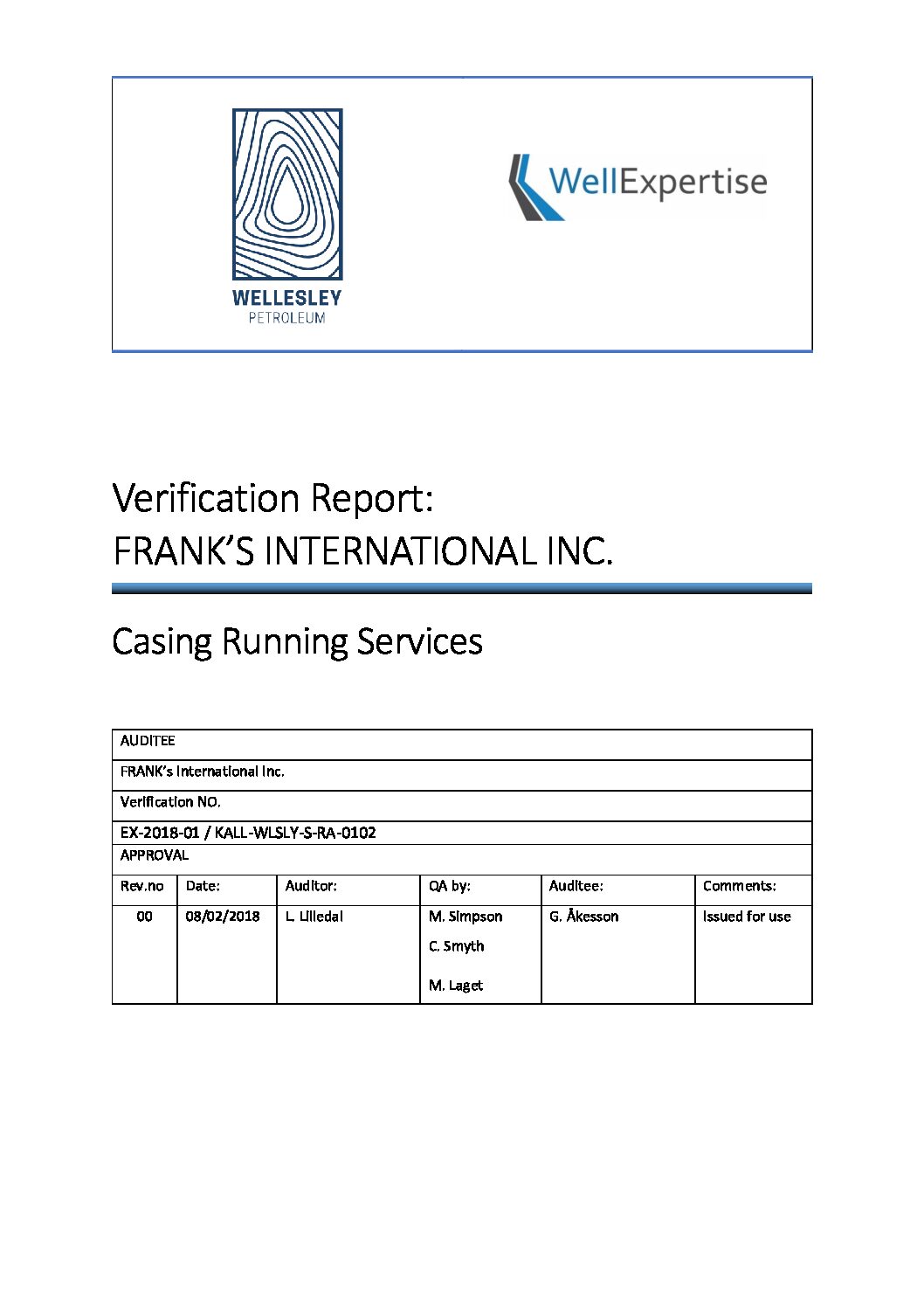 Verification Report: FRANK’S INTERNATIONAL INC.